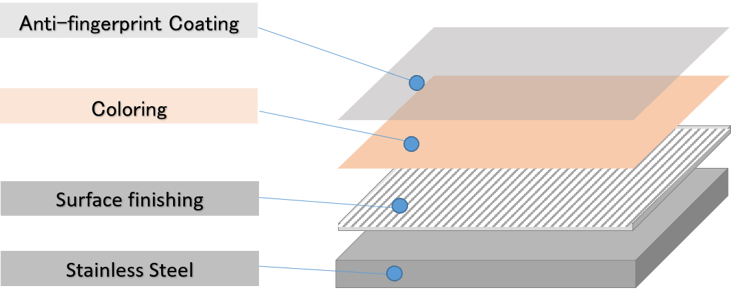 Coloring process such as Fine and NEUES makes a thin uniform oxide or ceramic layer formed on stainless steel surface can create range of colors on stainless steel while bringing out the texture and brightness of stainless steel.