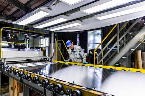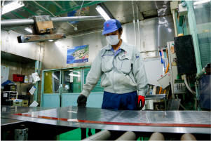 ステンレス意匠鋼板の外観が良好か確認します。